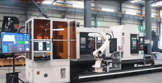 抓住3C機(jī)遇 嘉泰數(shù)控自成立以來,始終堅(jiān)持“立足數(shù)控機(jī)床,走創(chuàng)新發(fā)展之路”,力爭以可靠的產(chǎn)品質(zhì)量贏得市場(chǎng)信譽(yù),以領(lǐng)先的技術(shù)實(shí)現(xiàn)穩(wěn)步發(fā)展。2002年,第一臺(tái)型號(hào)為XT-M8850的硬軌立式加工中心誕生。此后的幾年,大型立式加工中心、五軸數(shù)控機(jī)床、大型龍門加工中心、大型五面體龍門加工中心等紛紛研制成功。于2009年成立了泉州市日旭精密機(jī)械有限公司,自主研發(fā)了數(shù)控分度盤、高速主軸、數(shù)控五面體加工頭、數(shù)控AC立臥轉(zhuǎn)換頭、數(shù)控五軸頭等功能部件。2010年,自主研發(fā)雙交換工作臺(tái)臥式加工中心JT-HM500;2013年,全國首創(chuàng)單動(dòng)柱五軸龍門加工中心研發(fā)成功;2014年,龍門型立式五軸加工中心實(shí)現(xiàn)量產(chǎn)。 扎實(shí)奮進(jìn)終會(huì)有回報(bào)。從企業(yè)的發(fā)展歷程了解到,嘉泰數(shù)控幾乎每年推出一款新產(chǎn)品。2015年,可以說是嘉泰發(fā)展史上取得豐碩成果的一年。不僅自主研發(fā)成功交換工作臺(tái)高速智能鉆攻中心JT-AIT450、數(shù)控鏜銑加工中心JT-HBM110/HBM130系列、智能玻璃加工機(jī)系列等,機(jī)器人智能自動(dòng)化生產(chǎn)線也實(shí)現(xiàn)量產(chǎn)。還是在這一年,國務(wù)院總理李克強(qiáng)親臨嘉泰數(shù)控視察、指導(dǎo)。
