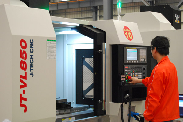其中嘉泰數(shù)控高速立式加工中心JT-VL850擁有48m/min快速定位,軸最大加速度1.0G,有效縮短加工定位時間,提高加工效率;特別是配置了10000rpm的直結(jié)式主軸,確保高速切削的穩(wěn)定性且無皮帶之動力損耗;最高剛性攻絲轉(zhuǎn)速:5000rpm,剛性攻絲倍速回退,有效提高剛性攻絲速度。該加工中心廣泛運(yùn)用于汽車零部件、摩托車/電動車配件等產(chǎn)品的有色金屬加工需要,以及模具(如塑料模具、橡膠模具、金屬模具等)、五金加工、工程機(jī)械、化工機(jī)械及配件的加工、鋁及鋁型材加工、適配器、油泵、攝影器材、其他機(jī)械行業(yè)零部件的加工主機(jī)等(如切割機(jī)、造紙機(jī)、紡織機(jī)、CNC等),確保高速、高精度、高穩(wěn)定性的加工要求。