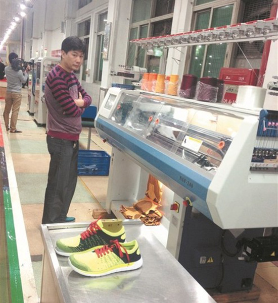 智能化鞋面橫機一次編織成型生產(chǎn)效率是人工的5倍 采用傳統(tǒng)的鞋面生產(chǎn)工藝作業(yè),人均每小時生產(chǎn)3雙鞋面,而一體鞋面機平均每小時的產(chǎn)量為15雙,這就是飛藝織造公司剛剛買進的野馬牌3D智能化針織鞋面橫機的“威力”。 這款由南安市南星工業(yè)機械有限公司投入批量生產(chǎn)的“數(shù)控一代”產(chǎn)品,顛覆傳統(tǒng)鞋面生產(chǎn)工藝,拋棄了傳統(tǒng)鞋面工藝的大量裁剪縫合工序,鞋面一次整體編織成型,同時可節(jié)約大量邊角廢料和勞動力。 安上四錠不同顏色的紗線,開啟機器,“噠噠噠”,不一會兒,一張張成型的彩色鞋面就源源不斷地“吐”出來,昨日記者親眼目睹了野馬牌3D智能化針織鞋面橫機的“魔力”。現(xiàn)場技術(shù)人員拿起一組鞋面,捏一捏,告訴記者:“你瞧,很輕便、透氣、舒適,可以根據(jù)要求個性定做,迎合目前時尚新穎的消費潮流。” 據(jù)南星公司相關(guān)負(fù)責(zé)人張明介紹,經(jīng)過為時一年的研發(fā),野馬牌鞋面橫機已完成定型并交付客戶使用,公司摸索出一套完整成熟的鞋面打版、編織、后整工藝,可為客戶提供有力的技術(shù)支持。據(jù)介紹,這臺新設(shè)備實現(xiàn)多項技術(shù)創(chuàng)新,比如,成型設(shè)定支持鞋面特性工藝,直觀、快速地生成制版系統(tǒng)鞋面花樣;花樣解譯自動優(yōu)化,可以自動分析機器參數(shù),對花樣編織優(yōu)化處理,縮短編織時間;通過擁有專利技術(shù)的升降式沉降片控制,能夠根據(jù)編織需要,精準(zhǔn)控制沉降片工作的力度,良好輔助脫圈;而快速回轉(zhuǎn)技術(shù)的應(yīng)用,輕便的6英寸機頭配合快速回轉(zhuǎn)功能,可以使效率提高10%以上。 “用戶使用我們的專用打版軟件設(shè)計鞋面花型,機器根據(jù)花型程序自動完成鞋面編織,自動化程度高,一人可同時操作10臺機器?!睆埫髡f,已經(jīng)與泉州飛藝織造公司簽訂100臺訂單,預(yù)計今后可完成年產(chǎn)400臺以上的生產(chǎn)規(guī)模。這款設(shè)備價格僅為同類進口機器的三分之一,而跟國內(nèi)同類型機器相比,野馬機具有運轉(zhuǎn)速度快、功能豐富、編織穩(wěn)定的特點。