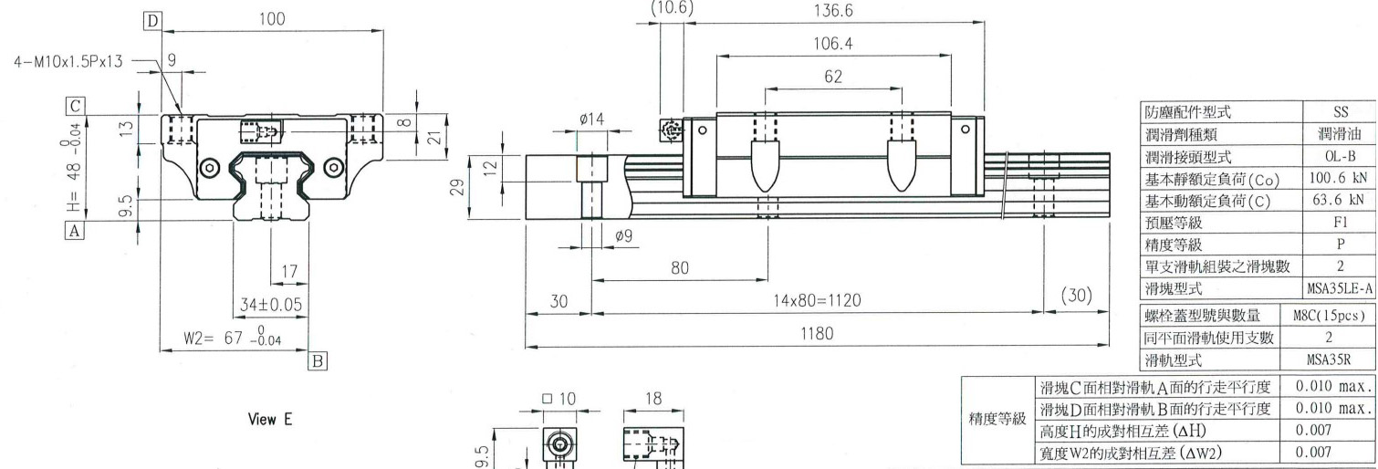 2、線軌的動、靜載荷分別達到100.6KN,與63.6KN;