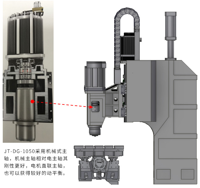 JT-DG-1050的主軸電機在低速時有較高的扭矩電機功率大,適合大面積開粗加工用。